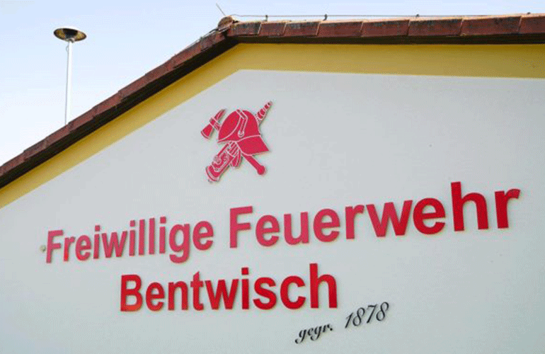 Für die Freiwillige Feuerwehr Bentwisch optimierten wir den offiziellen Schriftzug sowie die Logos und Wappen. Anschließend erstellten wir diese Fassadenbeschriftungen aus dem Hartschaum-PVC KÖMACELL in unterschiedlichen Stärken und lackierten sie im typischen Feuerwehr-Signalrot (RAL 3000, Feuerrot).