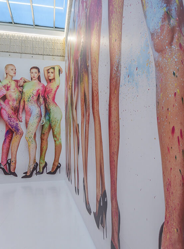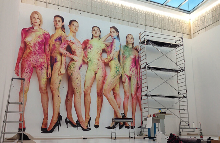 Mit dem „White Cube“ kam auch ein echtes Highlight nach Rostock. Im weißen Kubus waren 28 Models zu sehen, jedes fast sieben Meter hoch mit nichts an als High Heels und einem Hauch von Farbpulver… Wir halfen tatkräftig mit, dieses extra für Rostock geschaffene Panorama umzusetzen.